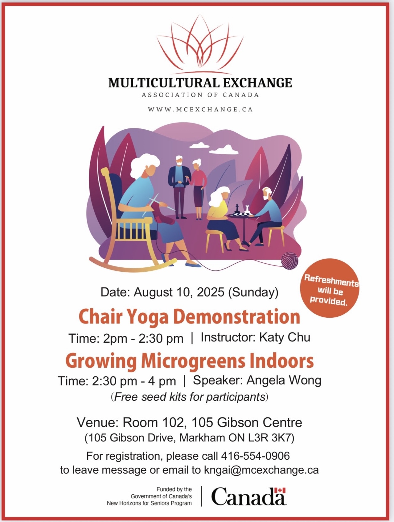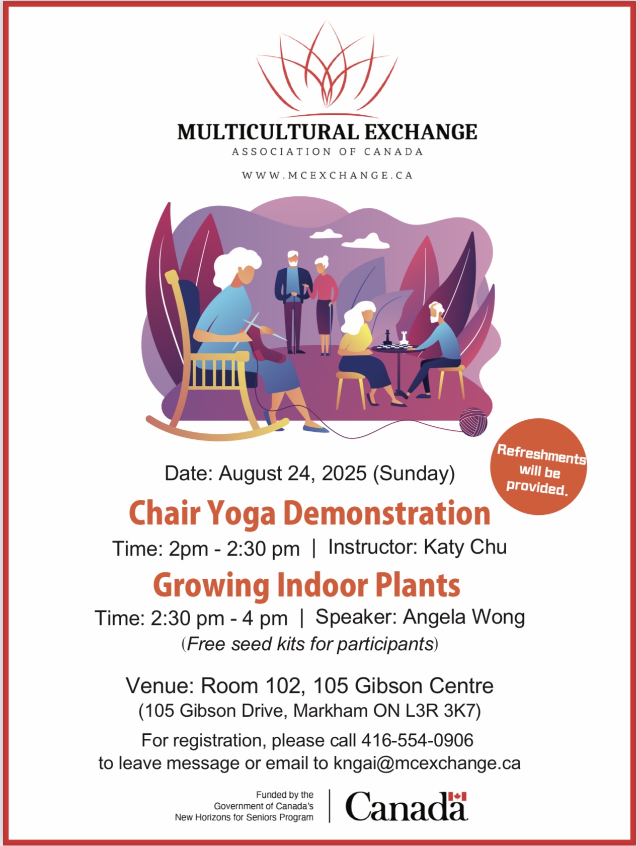 McExchange promoted multiculturalism and environmental protection at Seniors Day. The event was hosted by Association of Canada China Business, Culture, Innovation Exchange at Markham Peoples Theatre.
